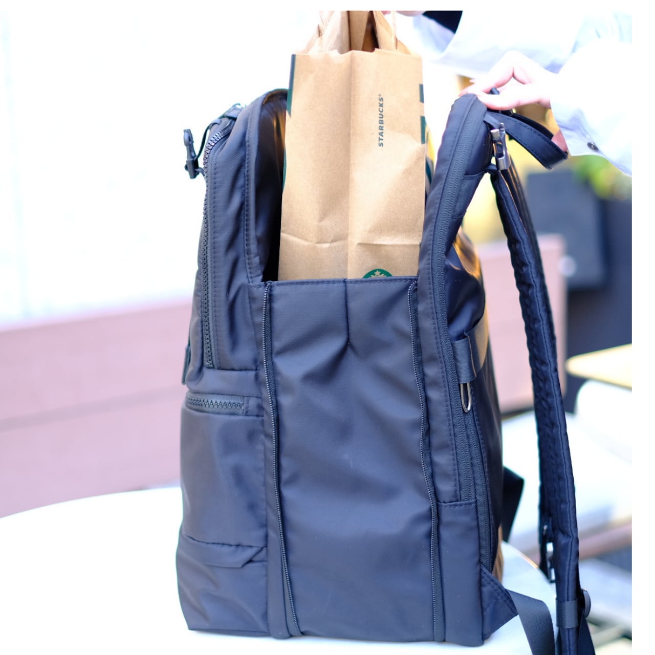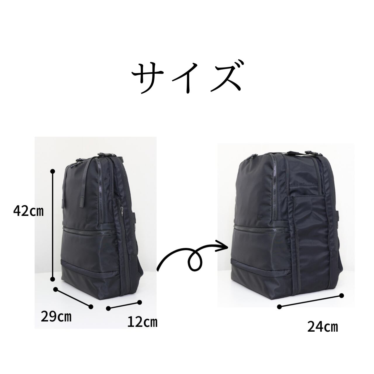 ファスナ-の開閉でまち幅が広がるFreeStyleリュックです。