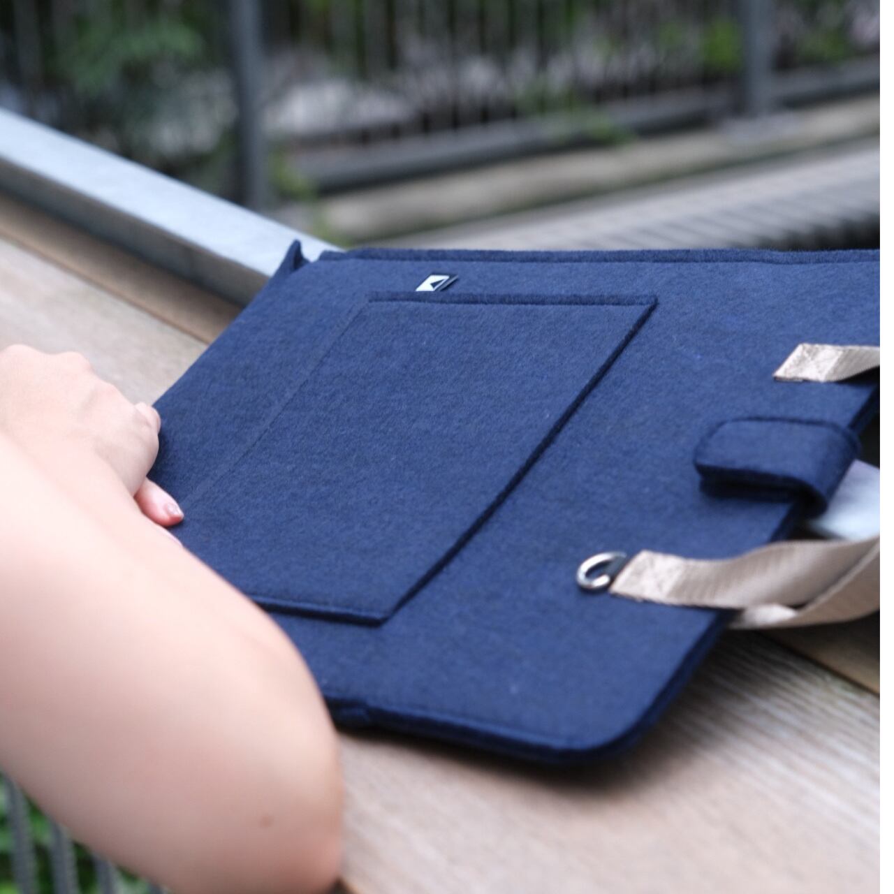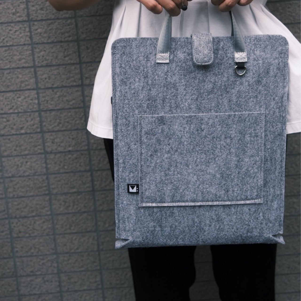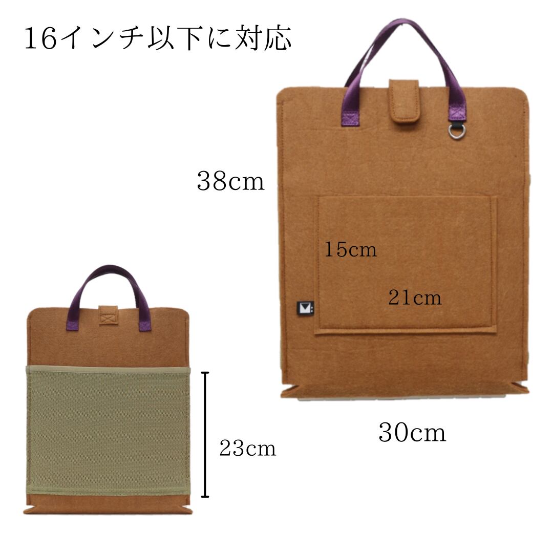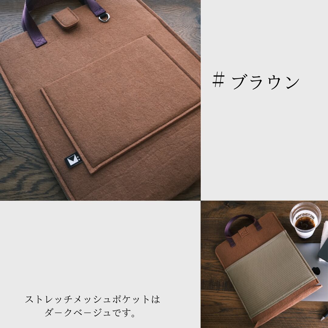 厚み3㎜のフェルト生地を使用していて、マチ幅はお手持ちのラップトップの厚みに合わせて自在に対応する構造になっており、重さは約170gで軽量です。スリムなバッグインケースとしてもご利用いただけます