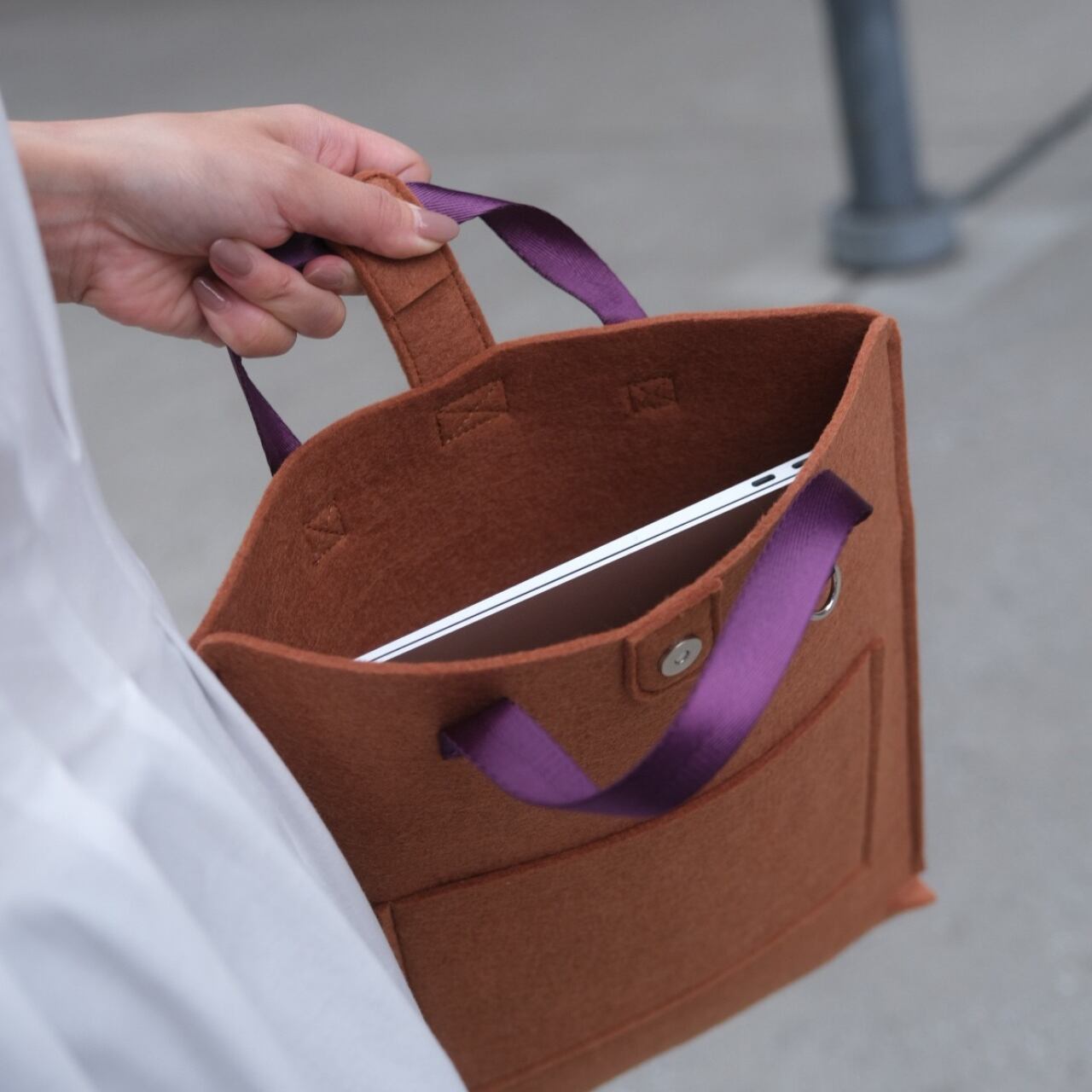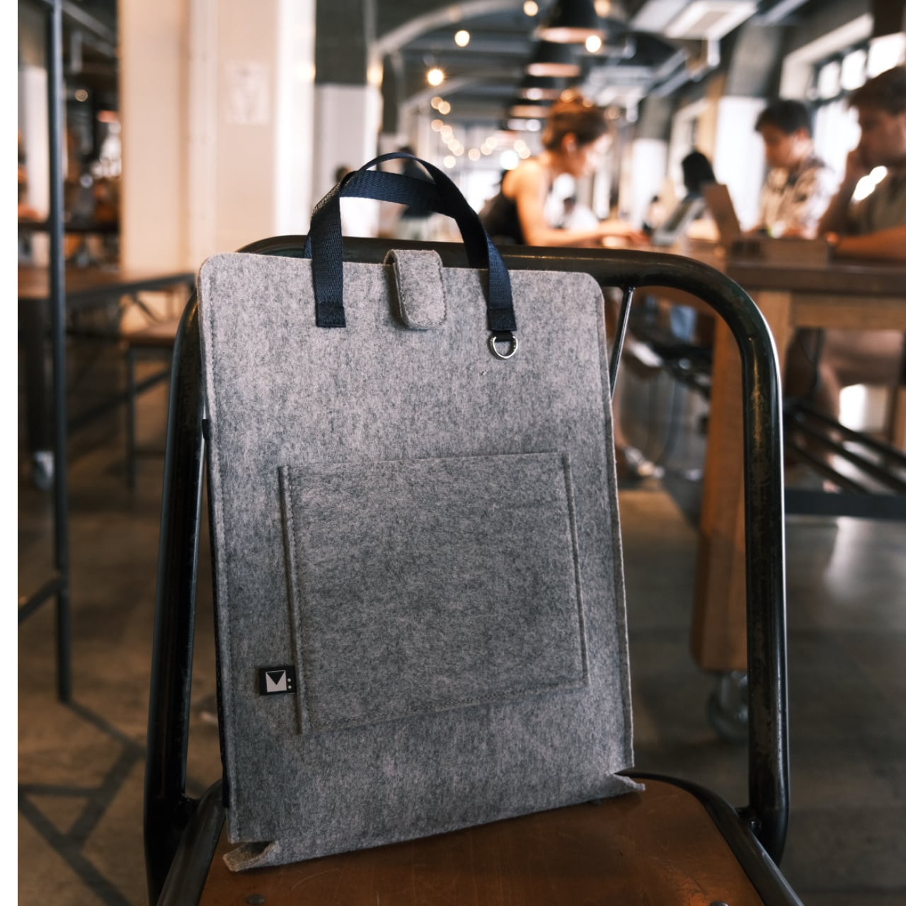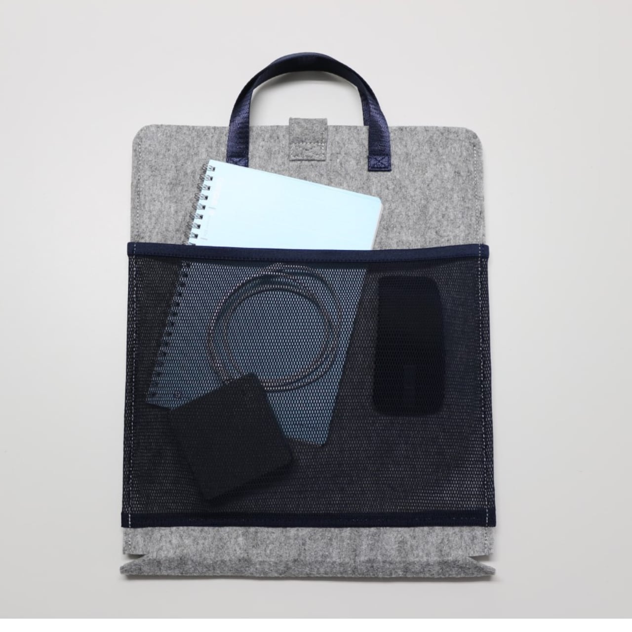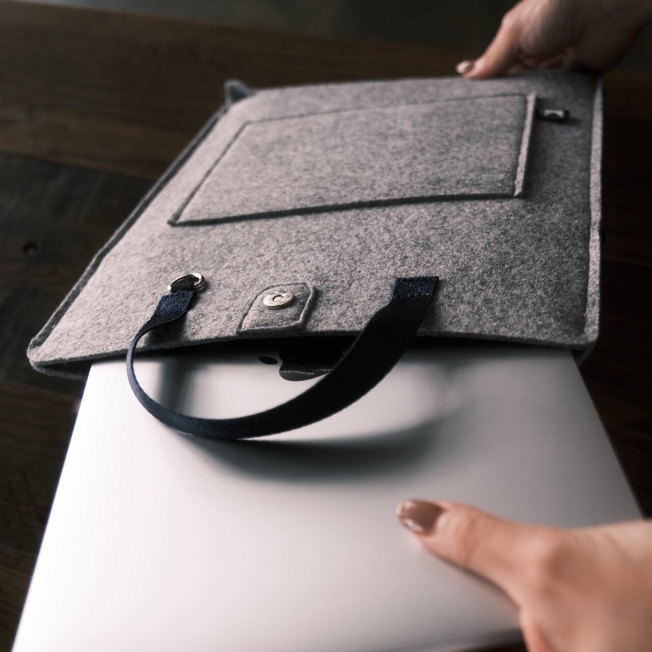 厚み3㎜のフェルト生地を使用していて、マチ幅はお手持ちのラップトップの厚みに合わせて自在に対応する構造になっており、重さは約170gで軽量です。スリムなバッグインケースとしてもご利用いただけます
